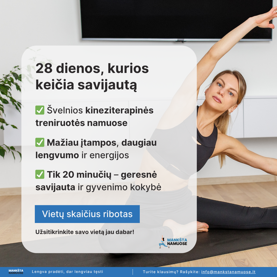 | ❌ Nieko nekeisti | ✅ Išbandyti 28 dienų kineziterapiją namuose |