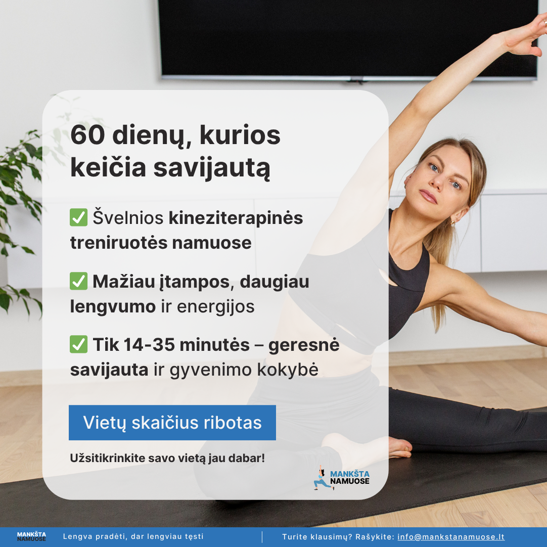 | ❌ Nieko nekeisti | ✅ Išbandyti 60 dienų kineziterapiją namuose |